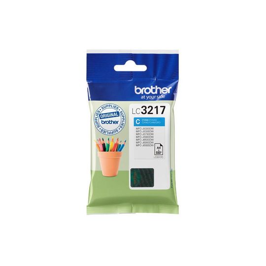 Brother ink cartridge. LC 3217C Cyan original ink cartridge yields 550 pages