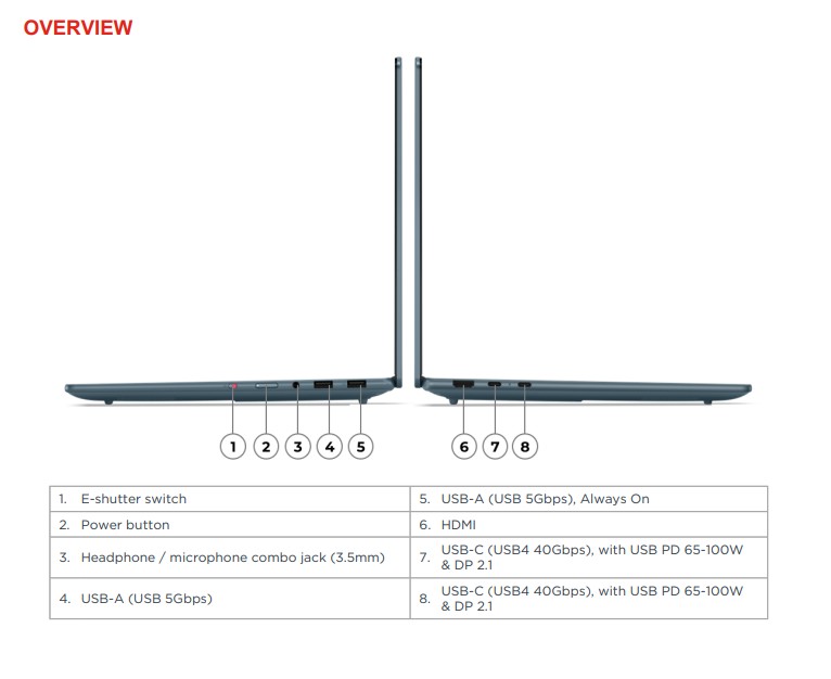 - Myndavél: 5MP + IR með loki (Windows Hello andlitsgreining)