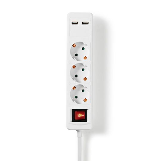Rafmagnsfjöltengi 3x 1,5m hvítt 2xUSB