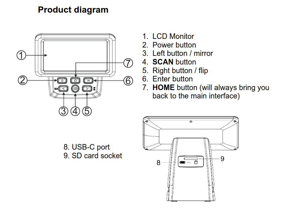- The digitized images can then be reproduced on the device. Thanks to its large display, the scanner can also be conveniently used for a slide show.